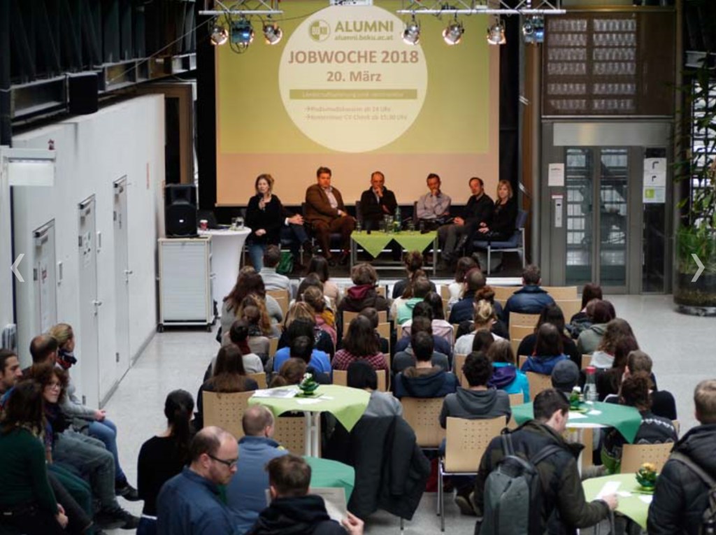 Stephanie Drlik hat die Podiumsdiskussion am 20. März 2018 an der BOKU im Rahmen der BOKU Jobwoche moderiert. Spannende Gespräche rund um die Zukunft der Disziplin und die Möglichkeiten für Studierende und JungabsolventInnen der Fachrichtung Landschaftsarchitektur mit Roland Grillmayer (Umweltbundesamt), Johannes Ehrenfeldner (Nationalpark Neusiedlersee-Seewinkel), Stefan Locher (Amt der Oö. Landesregierung – Direktion für Landesplanung), Agnes Feigl (Agnes Feigl Landschaftsarchitektur), Herbert Weidinger (Forst- und Landwirtschaftsbetrieb der Stadt Wien / MA 49) und Markus Beitl (Markus Beitl ZT GmbH).
