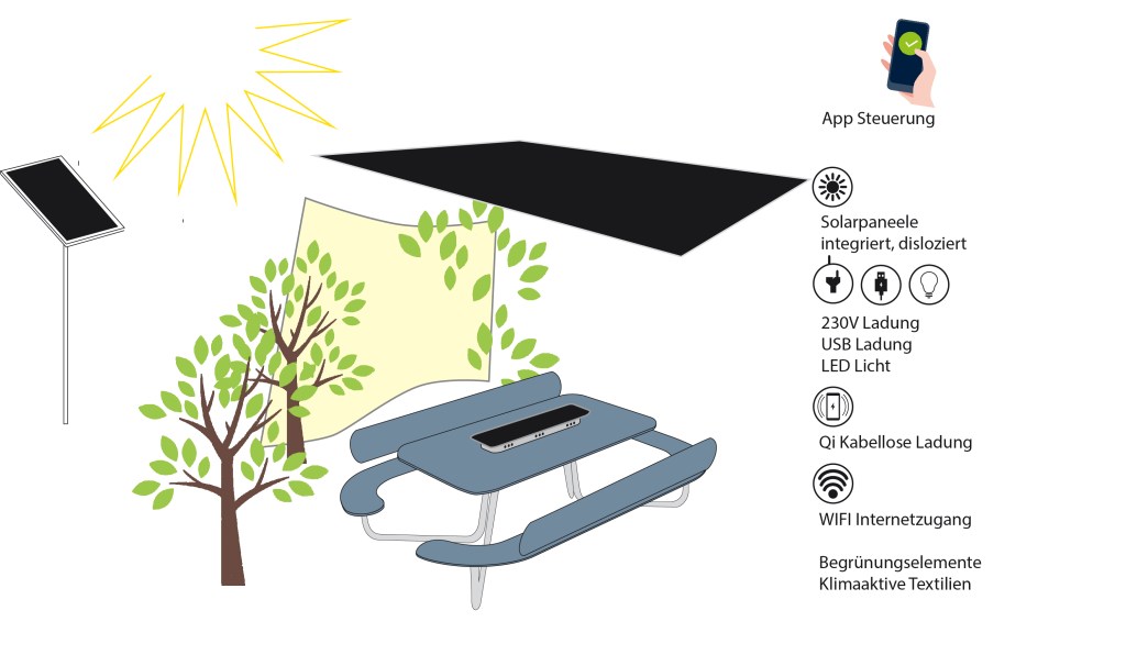 Die Klimakrise verlangt auf Grund steigender Temperaturen insbesondere in der österreichischen Bundeshauptstadt Wien nach mehr Aufenthaltsmöglichkeiten im begrünten, kühlen Freiraum. Gerade Menschen, die in herkömmlichen Büroräumlichkeiten in dicht bebauten Gebieten der Stadt arbeiten, leiden unter schlechten Arbeitsbedingungen durch klimawandelbedingt steigende Temperaturen. Laut wissenschaftlichen Erkenntnissen ist auch die Übertragungsgefahr des Covid-19 Virus im Freien erheblich geringer als in geschlossenen Räumen. Zur Entschärfung der Situation und Steigerung der Resilienz der Stadt Wien als Arbeitsstandort, wäre es daher sinnvoll, Arbeitsplätze und Besprechungsräume zeitweise während der warmen Monate des Jahres zeitweise in den Außenraum verlegen zu können. Parkanlagen bieten bei Schönwetter eine sinnvolle Alternative zum Arbeiten in überhitzen Büroräumen.