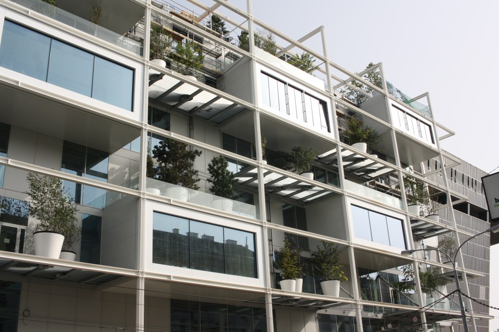 Mit dem Querkraft-Entwurf nahm man sich die Realisierung einer alles andere als gewöhnlichen Gebäudebegrünung vor. Der Innovationsfaktor hält, was der Entwurf versprochen hat. Herkömmliche Pflanzungen und Rankgerüste finden sich nur vereinzelt. Die eigentliche Begrünung besteht aus Bäumen, die in überdimensionalen Blumentöpfen an der Fassade, auf dem Dach und in Innenhöfen wachsen. Diese rund 160 Bäume sollen den Eindruck eines skandinavischen Waldes vermitteln, inspiriert durch die vier schwedischen Nationalparks.