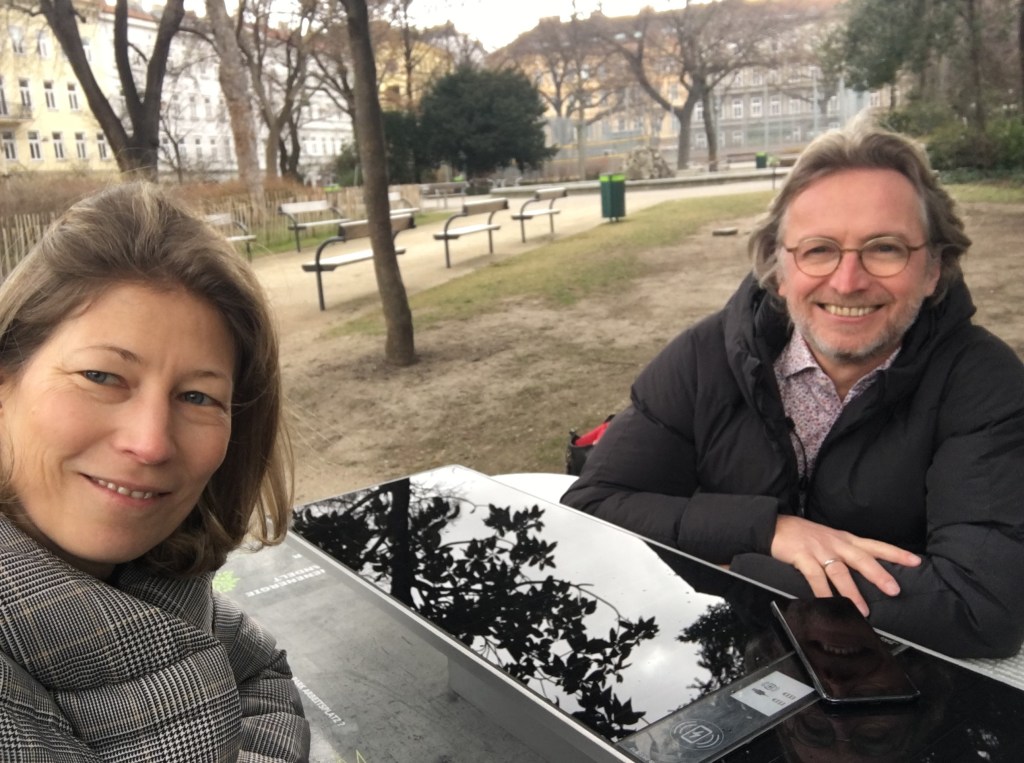 Im Februar hat Martin Fabisch, Bezirksvorsteher der Josefstadt, den Park-Arbeitsplatz im Schönbornpark besucht. Wir freuen uns sehr, dass der 8. Bezirk eine der ersten beiden Teststationen Wiens aufgenommen hat und uns so ermöglicht, die Ladestation im realen Setting einer Parkanlage zu testen. Bei dem Treffen konnten wir berichten, wie gut der Park-Arbeitsplatz von den NutzerInnen angenommen wird. Aber natürlich haben sich auch Schwächen gezeigt, die das Forscher*innen-Team in der Testphase beschäftigen. Bei der Arbeitsstation im Schönbornpark dreht sich derzeit alles um die Ausfälle beim Stromladen, die auf die mäßige Leistung der Photovoltaik Anlage zurückzuführen ist. Denn in der historischen Grünanlage spenden alte Bäume herrlichen Schatten, der gerade in den Sommermonaten für ein angenehm kühles Mikroklima sorgt. Das ist fürs konzentrierte Arbeiten ein großer Vorteil, doch für die Gewinnung von Sonnenenergie eine Herausforderung. Doch so ist das eben in Grünanlagen. Und deshalb entwickeln die LandschaftsarchitektInnen und TechnikerInnen vom Park-Working-Team sinnvolle Lösungen für unterschiedliche Standortbedingungen, mit denen wir in jedem Park optimale Arbeitsbedingungen schaffen. Happy Park Working!