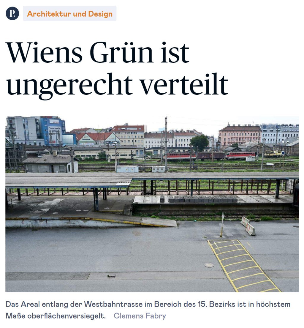 Während man in Wien mühsam versucht nachträglich Oberflächen zu begrünen, wird gleichzeitig bei Neubauten versiegelt, was das Zeug hält. Pflanzen findet man oft nur auf den dschungelartigen Projekt-Renderings, die helfen sollen, Wettbewerbe zu gewinnen oder Bürger:innen von der Bebauung ihrer Wohnumgebung zu überzeugen. Vorallem in der Bestandsstadt hinkt die gebaute Wiener Realität dem Idealbild hinterher. Die Bauordnungsnovelle könnte Abhilfe schaffen, doch der veröffentlichte Entwurf vergibt wichtige chancen auf Änderung. STEPHANIE DRLIK in DIE PRESSE vom 20.08.2023